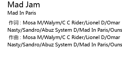 | [00:00.000] | 作词 : Mosa M/Walym/C C Rider/Lionel D/Omar Dee/Hakim/Dee Nasty/Sandro/Abuz System D/Mad In Paris/Ounsa Koma |