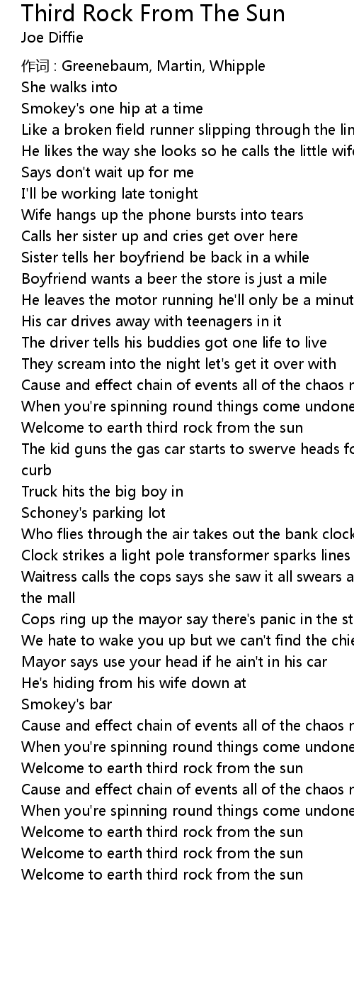 | Song | Third Rock From The Sun |
