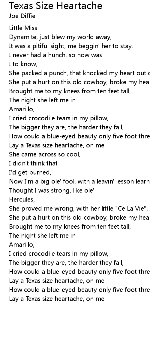 Lay a Texas size heartache, on me |