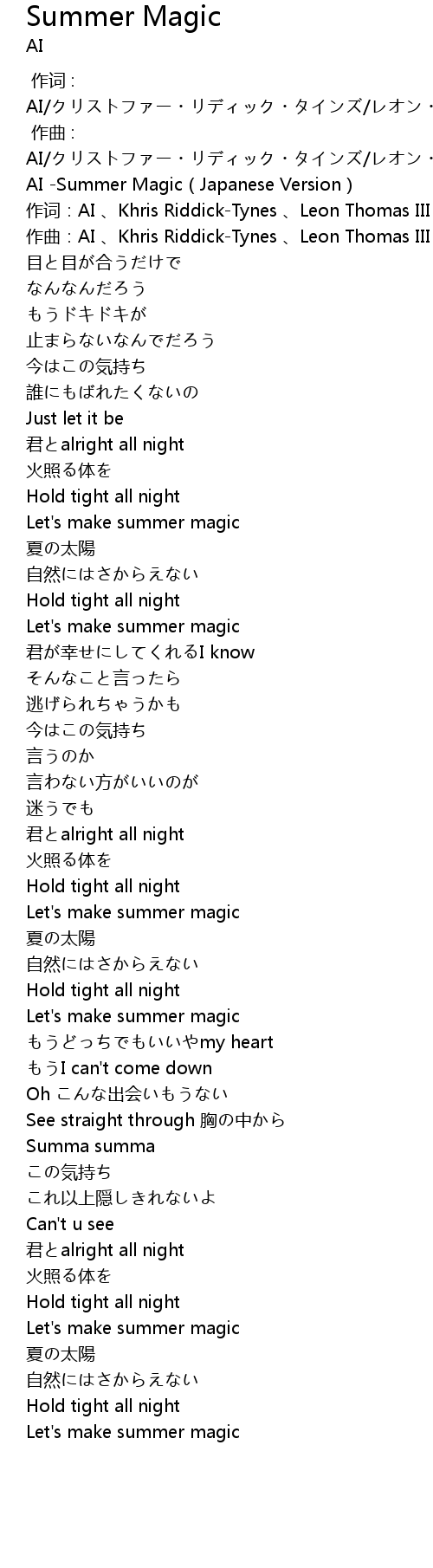 | [00:00.93] | AI Summer Magic Japanese Version |