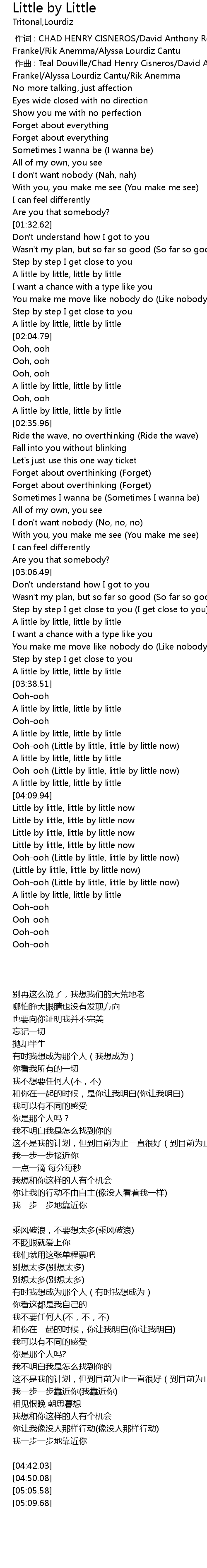 | [04:02.41] | Ooh-ooh (Little by little, little by little now) |
