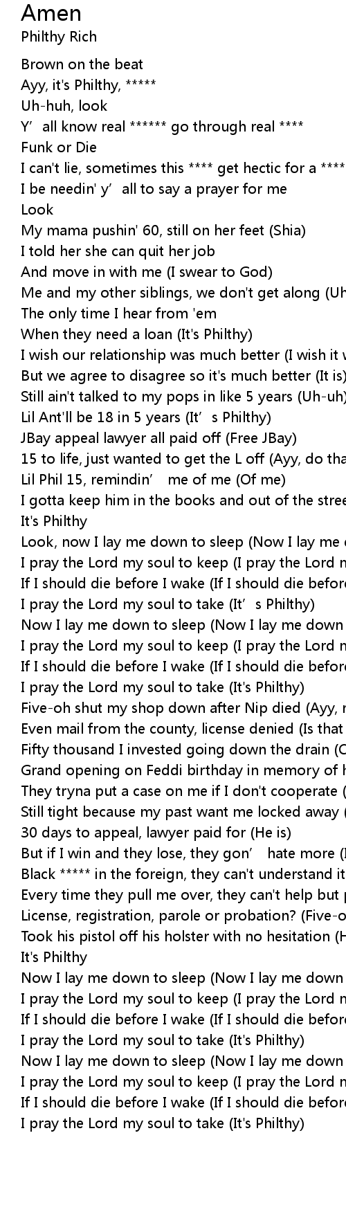 | [01:06.00] | I pray the Lord my soul to take (It’s Philthy) |