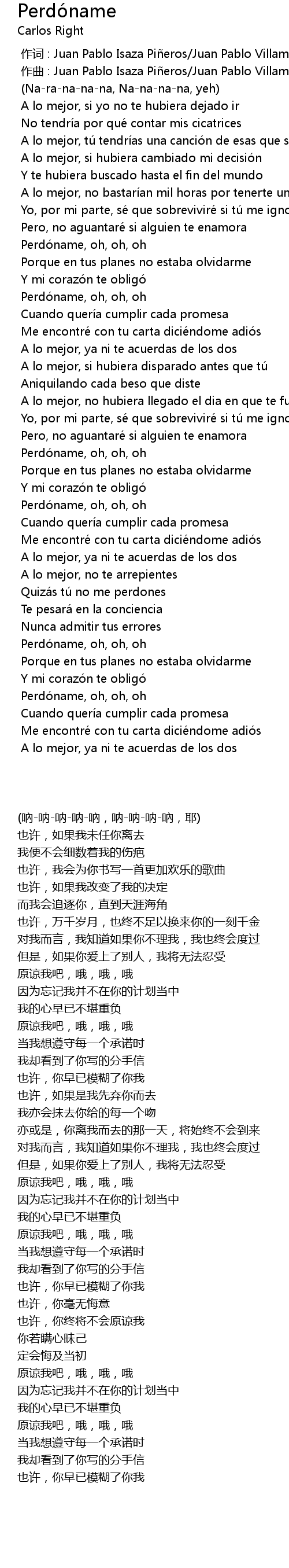 | [02:47.693] | Perdóname, oh, oh, oh |