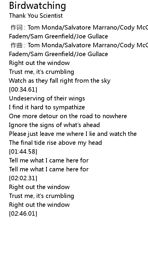 | [00:00.000] | zuò cí : Tom Monda Salvatore Marrano Cody McCorry Ben Karas Joe Fadem Sam Greenfield Joe Gullace |