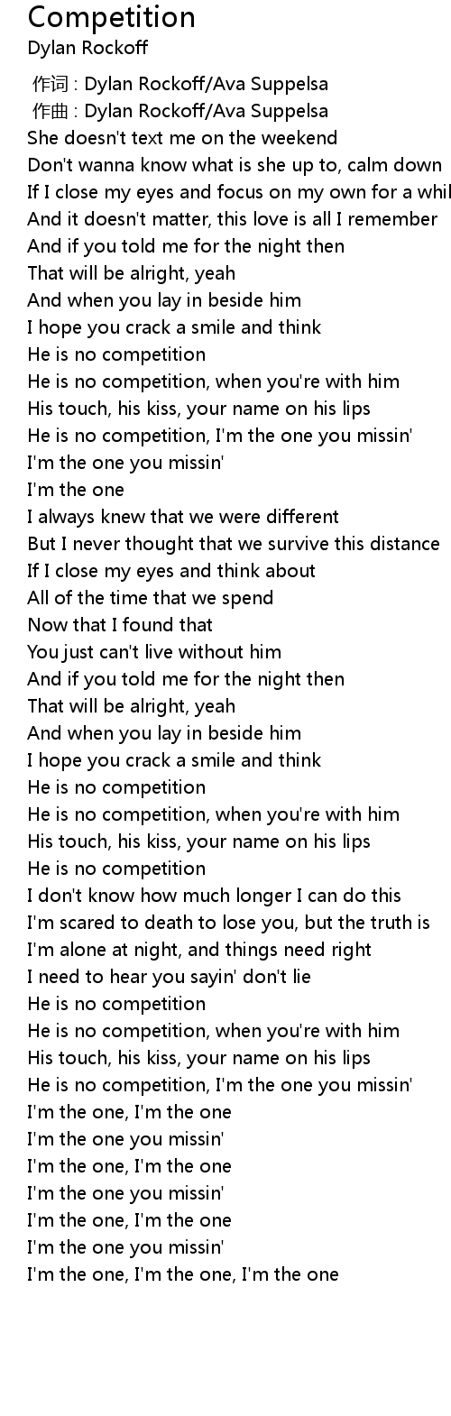 | [00:52.341] | He is no competition, I'm the one you missin' |