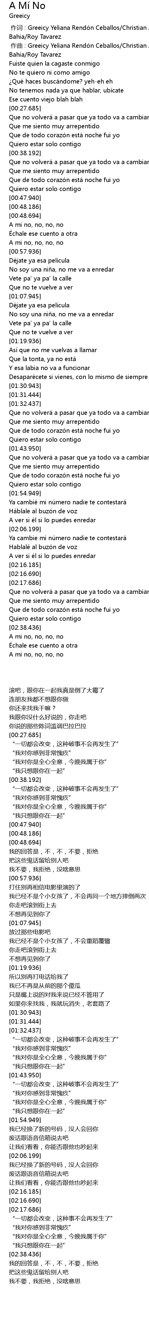 | [00:01.000] | zuo qu : Greeicy Yeliana Rendo n Ceballos Christian Adorno Mike Bahia Roy Tavarez |