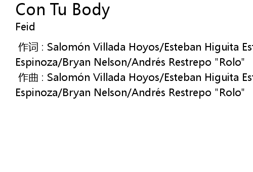 | [00:00.000] | 作曲 : Salomón Villada Hoyos/Esteban Higuita Estrada/Johan Espinoza/Bryan Nelson/Andrés Restrepo "Rolo" |