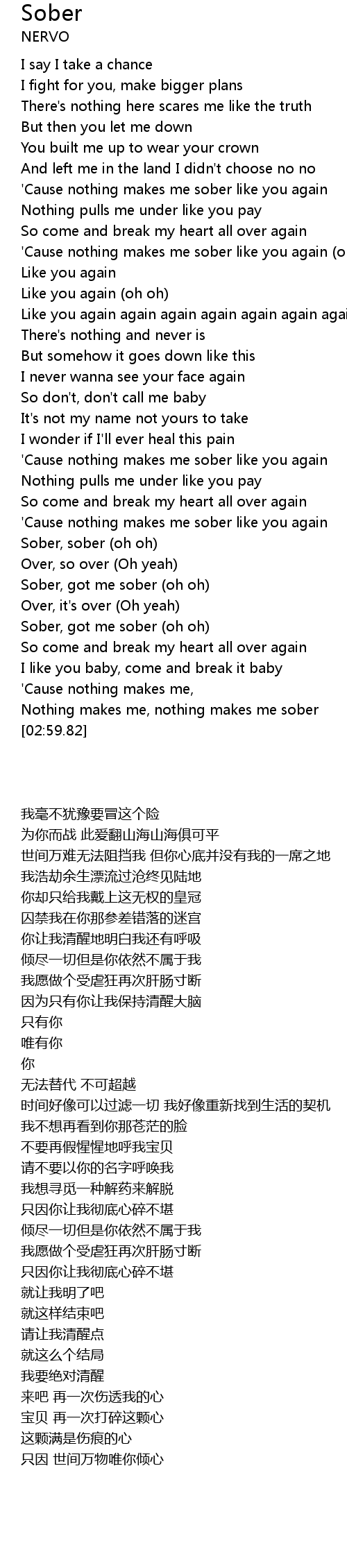 | [02:52.77] | Nothing makes me, nothing makes me sober |
