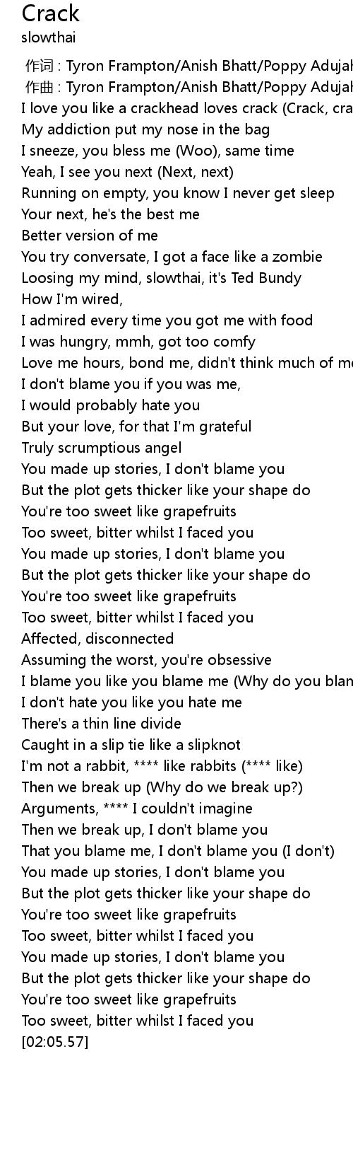 | [00:02.42] | I love you like a crackhead loves crack (Crack, crack) |