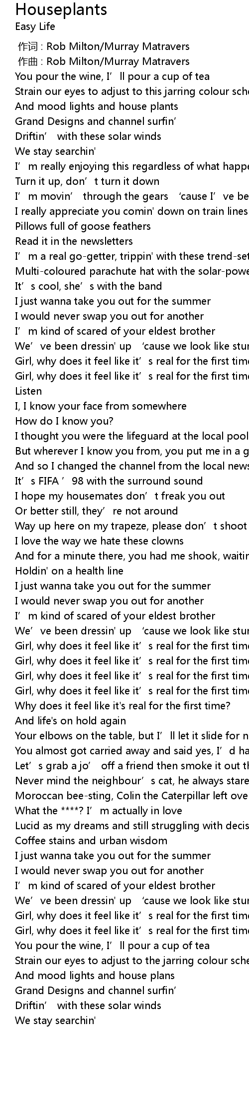 | Song | Houseplants |