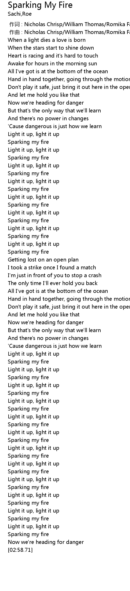 | [02:43.10] | Sparking my fire |