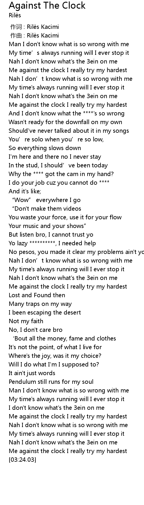 | [00:39.67] | Me against the clock I really try my hardest |