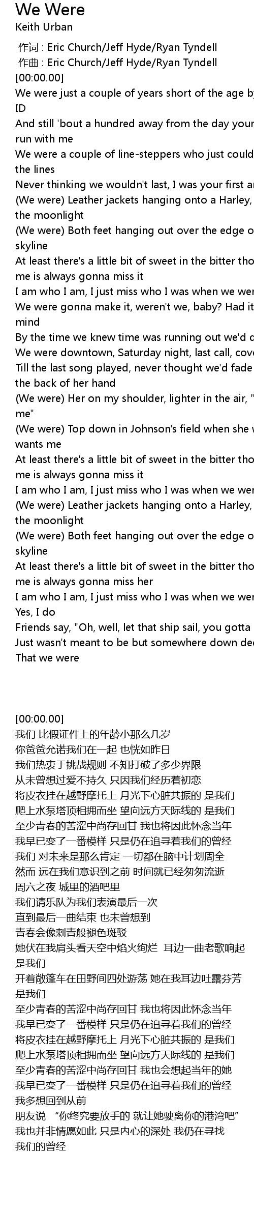 | [00:00.000] | 作词 : Eric Church/Jeff Hyde/Ryan Tyndell |