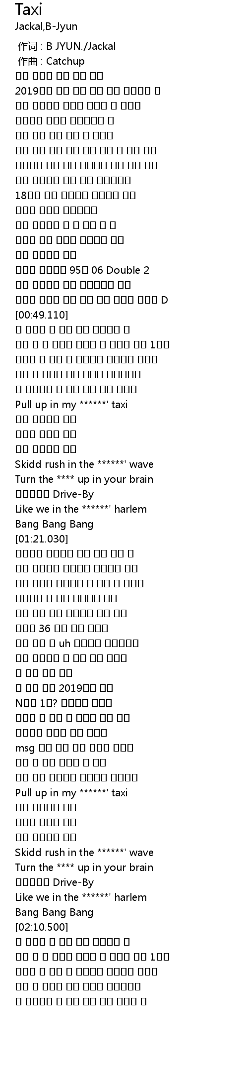 | [01:23.250] | 택시 아저씨들 정치하니 호주머니 노려 |