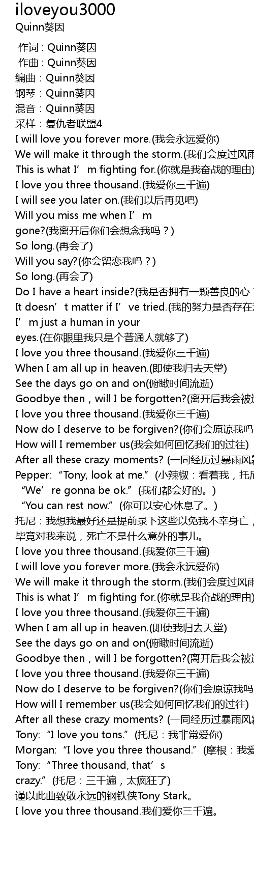 | [02:53.80] | Morgan:“I love you three thousand.”(摩根:我爱你三千遍) |