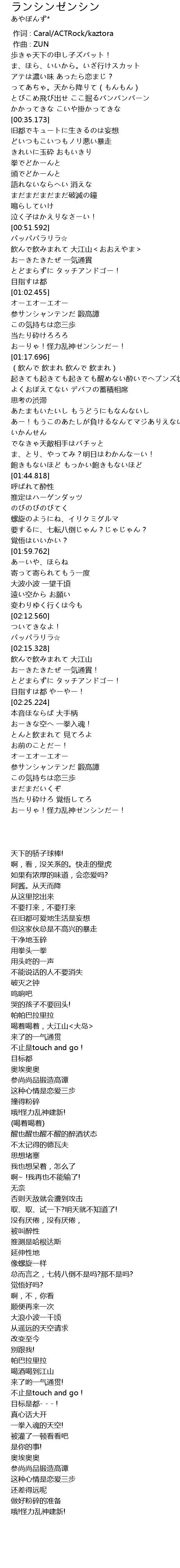 | [00:36.514] | どいつもこいつもノリ悪い暴走 |