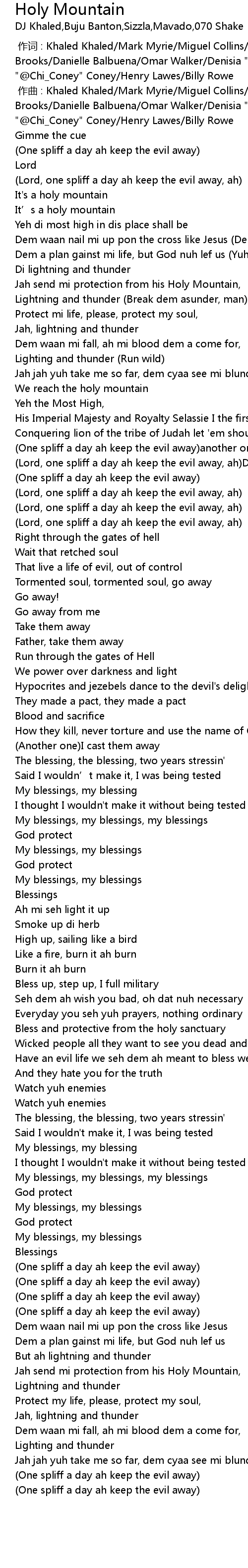 | [01:10.78] | (Lord, one spliff a day ah keep the evil away, ah)DJ Khaled |