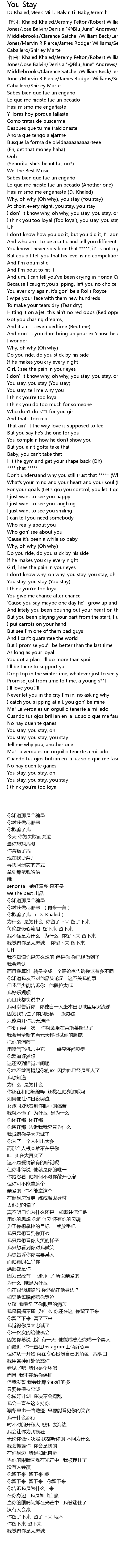 | [00:00.000] | 作词 : Khaled Khaled/Jeremy Felton/Robert Williams/Dominique Jones/Jose Balvin/Denisia "@Blu_June" Andrews/Brittany "@Chi_Coney" Coney/Ralph Middlebrooks/Clarence Satchell/William Beck/Leroy Bonner/Marshall Eugene Jones/Marvin R Pierce/James Rodger Williams/Sergio George/Linda Caballero/Shirley Marte |