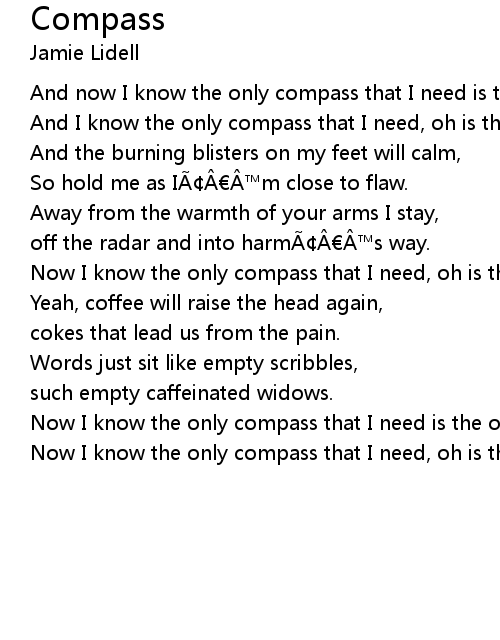 | Now I know the only compass that I need, oh is the one that leads back to you. | |