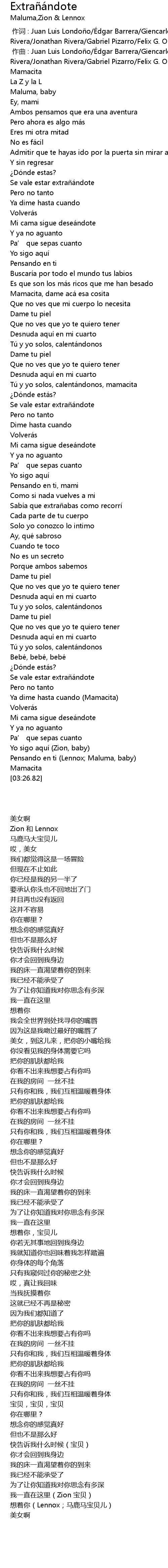 | [03:16.27] | Pensando en ti Lennox Maluma, baby |