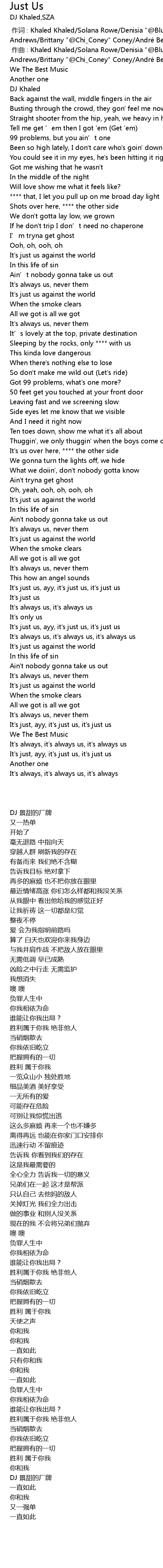 | [02:31.22] | It's just us, ayy, it's just us, it's just us |