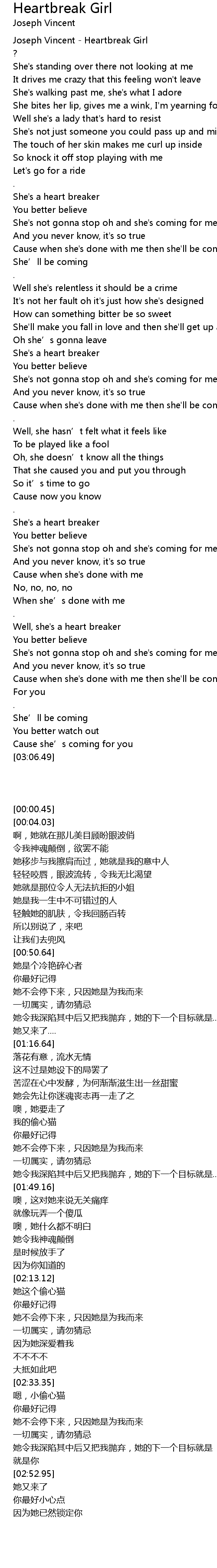 | [00:00.45] | Joseph Vincent Heartbreak Girl |