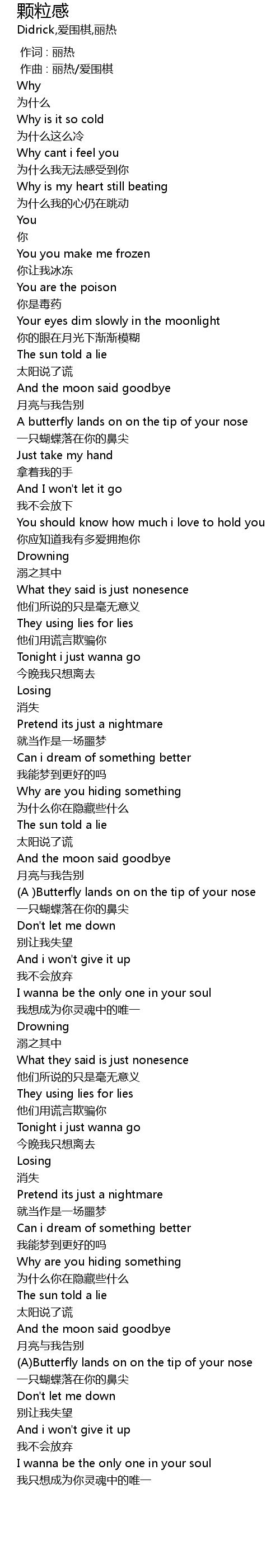 | [03:14] | 一只蝴蝶落在你的鼻尖 |