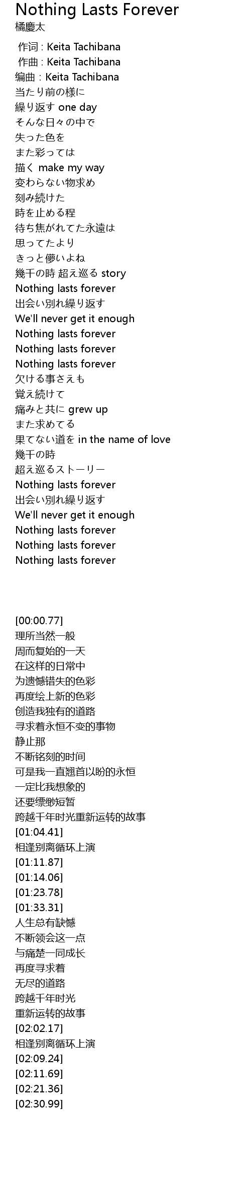 | [02:30.99] | Nothing lasts forever |