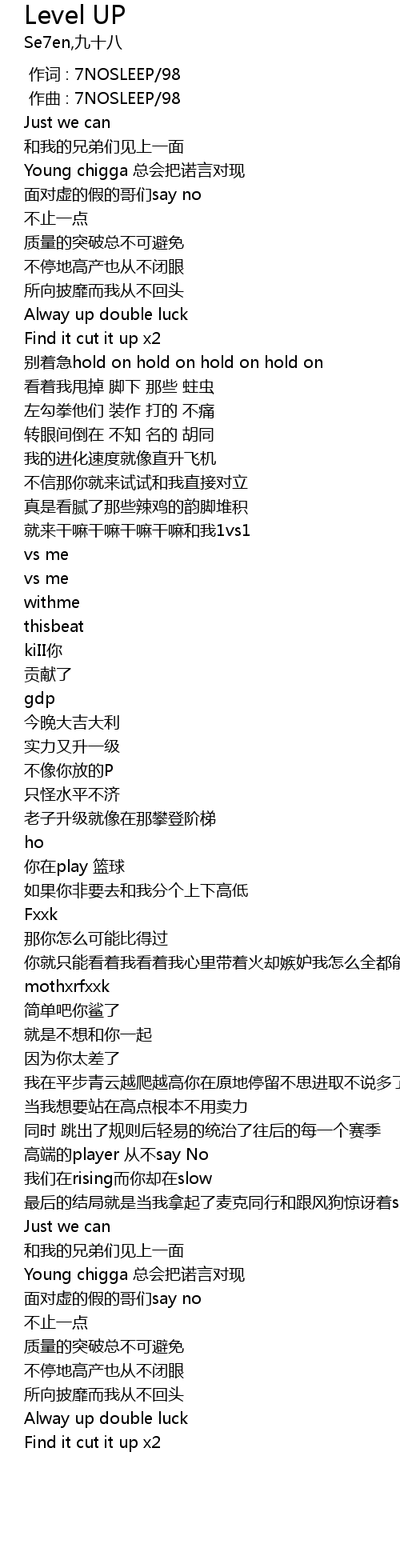 | [00:01.000] | zuò qǔ : 7NOSLEEP 98 |