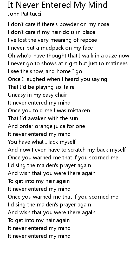 It never entered my mind |