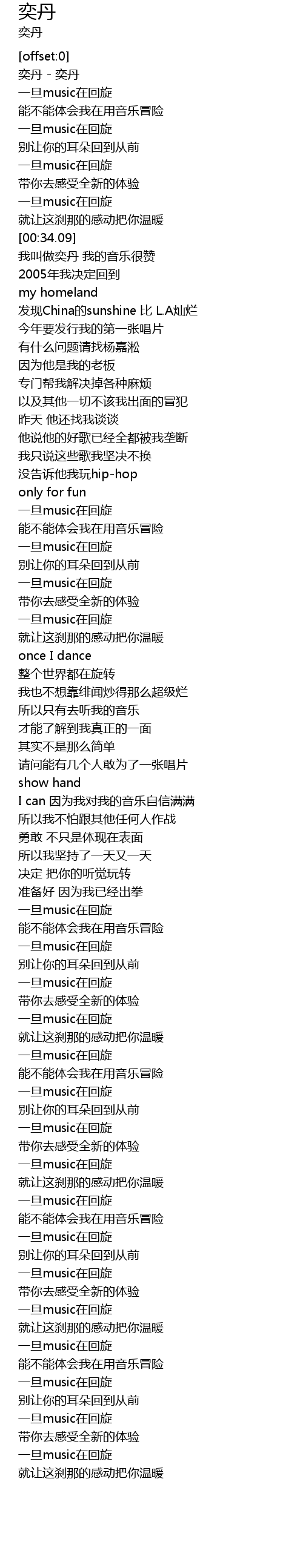 | [00:37.52] | 我叫做奕丹 我的音乐很赞 |