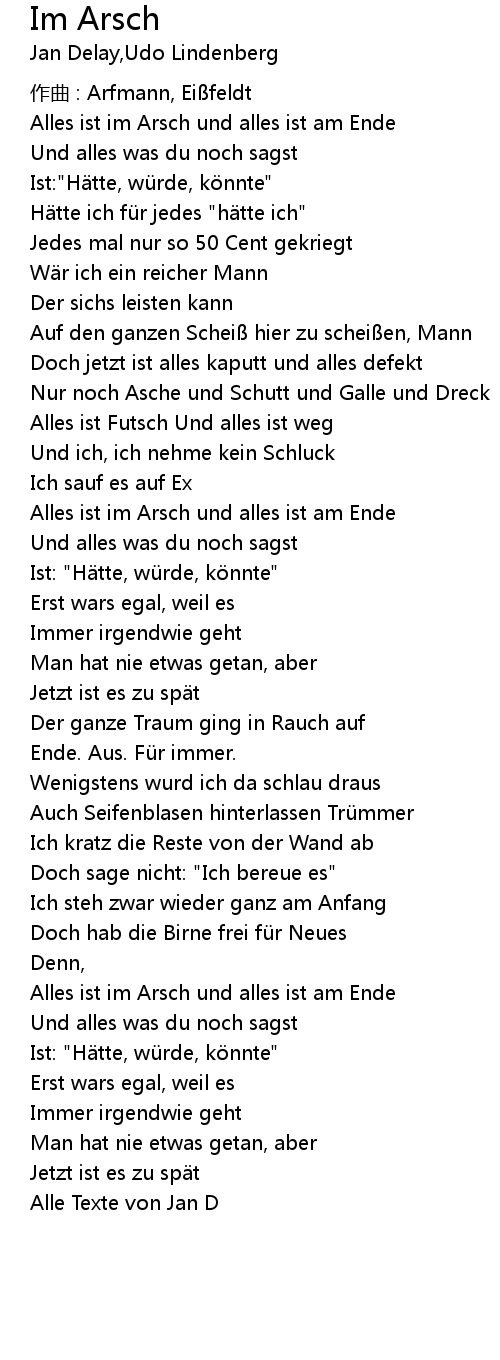 | Nur noch Asche und Schutt und Galle und Dreck | |