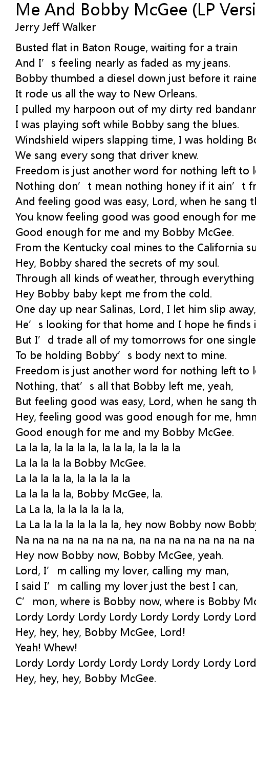 | [04:20.00] | Hey, hey, hey, Bobby McGee. |