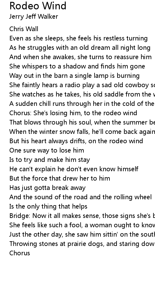 Chorus: She's losing him, to the rodeo wind |