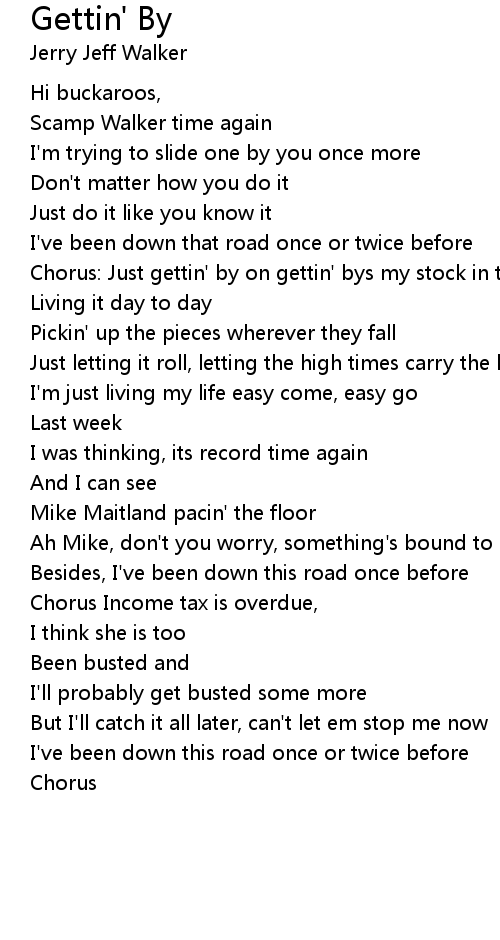 Chorus: Just gettin' by on gettin' bys my stock in trade |