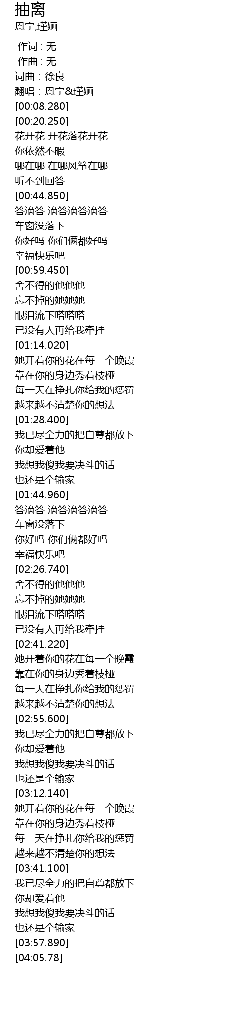 | [00:03.820] | 词曲:徐良 |
