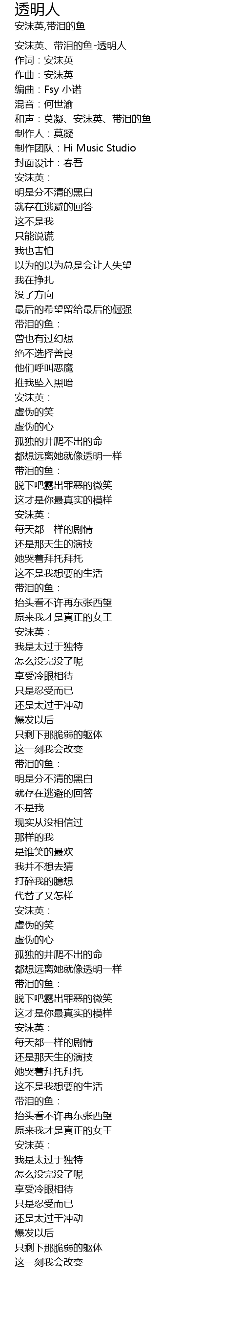 | [00:00.00] | 安沫英、带泪的鱼-透明人 |
