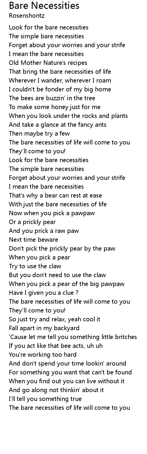 The bare necessities of life will come to you |