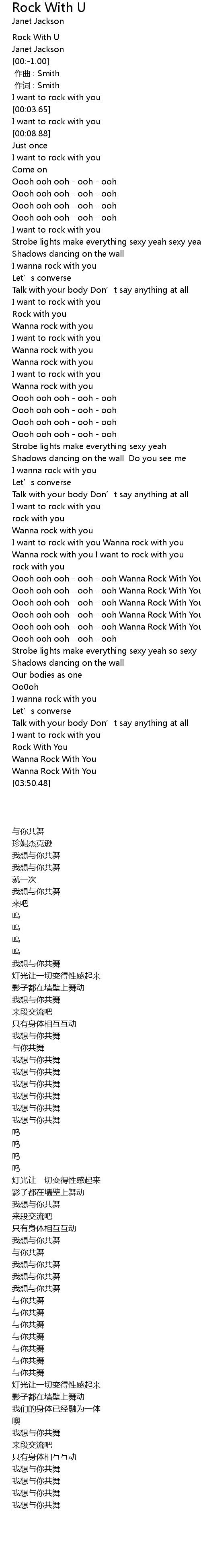 | [02:19.59] | Wanna rock with you I want to rock with you |