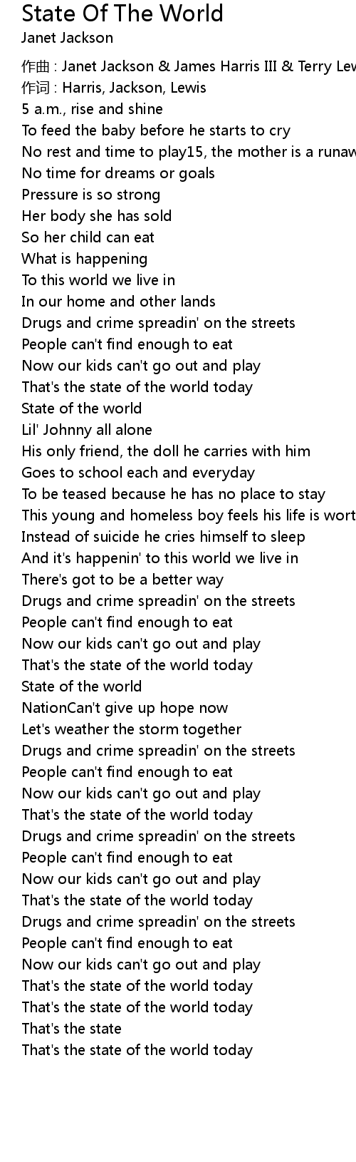 | Song | State Of The World |