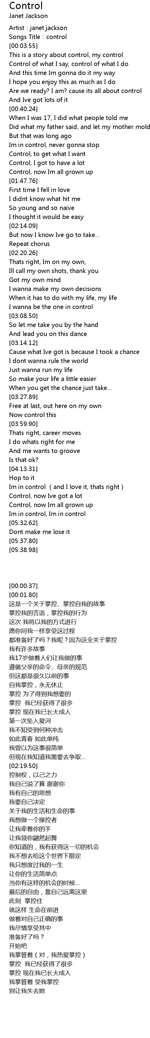 | [00:28.38] | Are we ready? I am? cause its all about control |