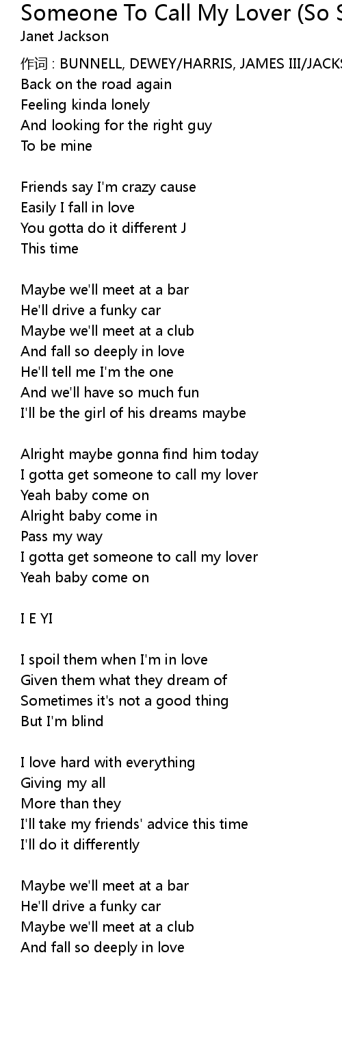 | 作词 : BUNNELL, DEWEY/HARRIS, JAMES III/JACKSON, JANET/LEWIS, TERRY | |