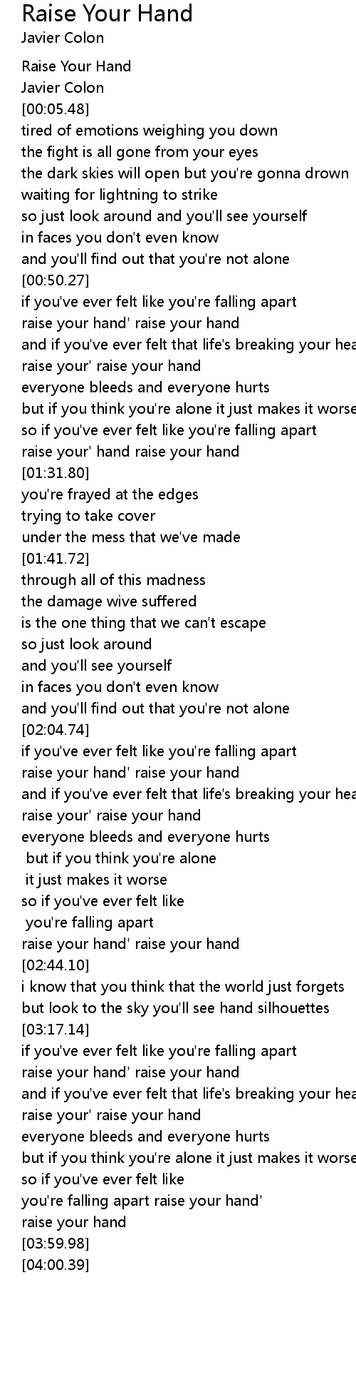 you're falling apart raise your hand' |