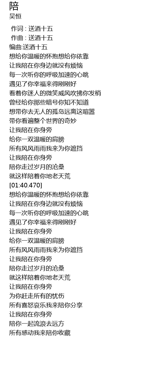 | [02:41.454] | ràng wǒ péi zài nǐ shēn páng |