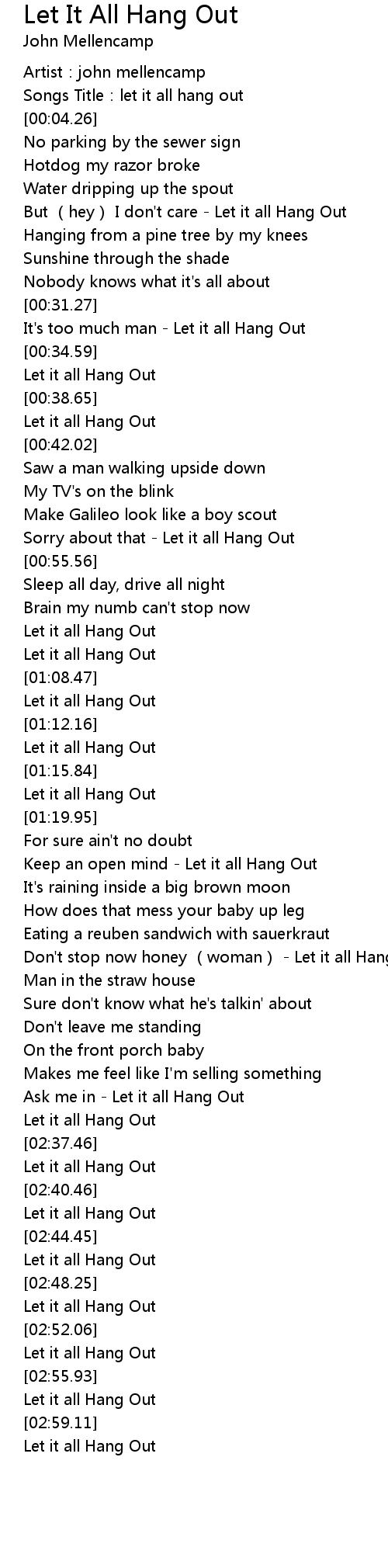 | [00:50.45] | Sorry about that - Let it all Hang Out |