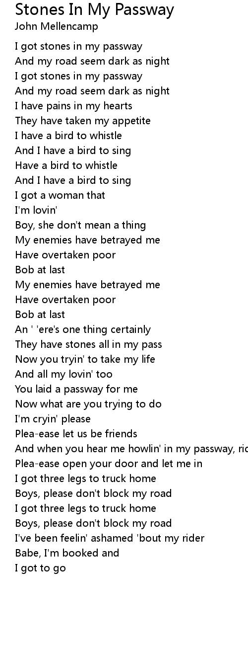 I got stones in my passway |