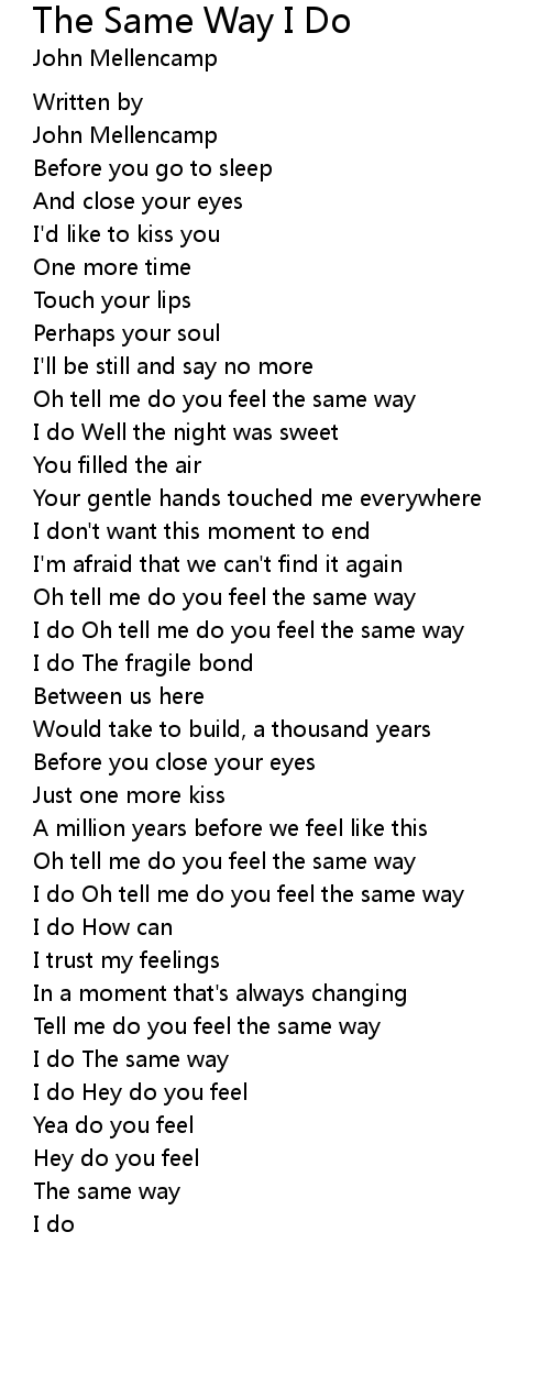 I do Oh tell me do you feel the same way |