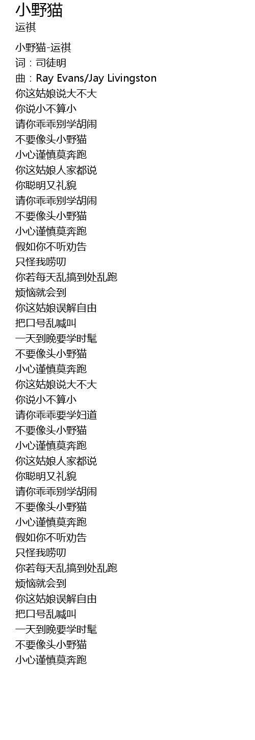 | [00:00.828] | xiǎo yě māo yùn qí |