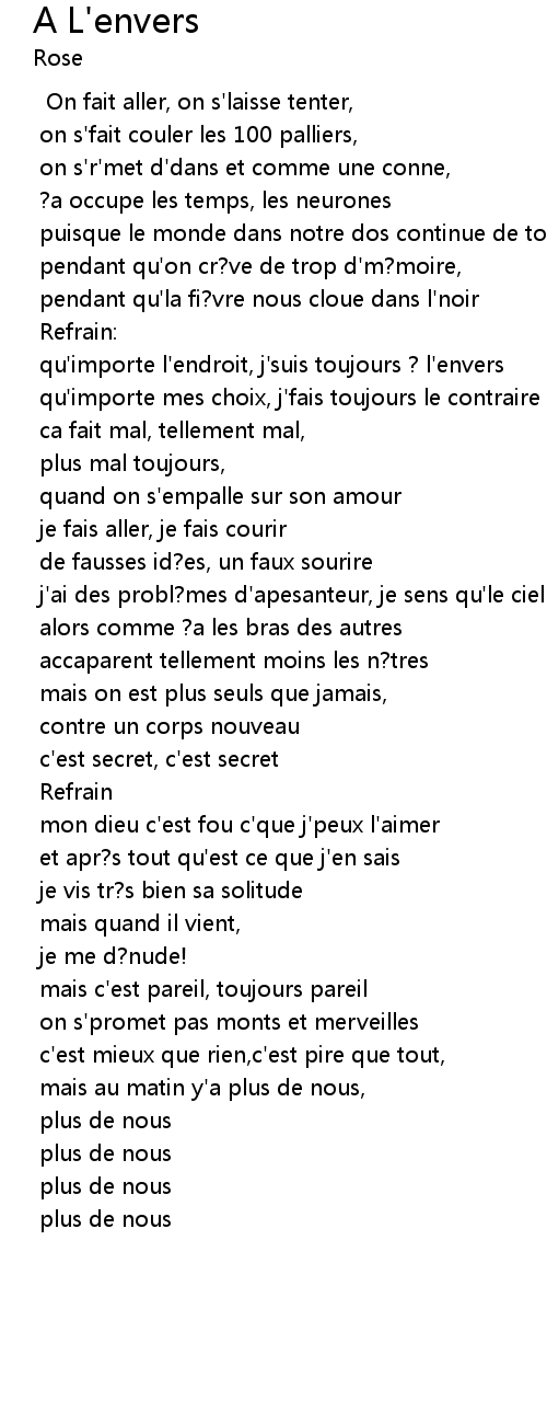 | qu'importe l'endroit, j'suis toujours ? l'envers | |