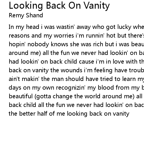 In my head i was wastin' away who got lucky when i couldn't stay testify my reasons and my worries i'm runnin' hot but there's nowhere to go walk that walk hopin' nobody knows she was rich but i was beautiful (gotta change the world around me) all the fun we never had lookin' on back child all the fun we never had lookin' on back child cause i'm in love with the better half of me looking back on vanity the wounds i'm feeling have troubled my plan a longer distance ain't makin' the man should have tried to learn my lesson well amplified by the days on my own recognizin' my blood from my bone she was rich but i was beautiful (gotta change the world around me) all the fun we never had lookin' on back child all the fun we never had lookin' on back child cause i'm in love with the better half of me looking back on vanity |
